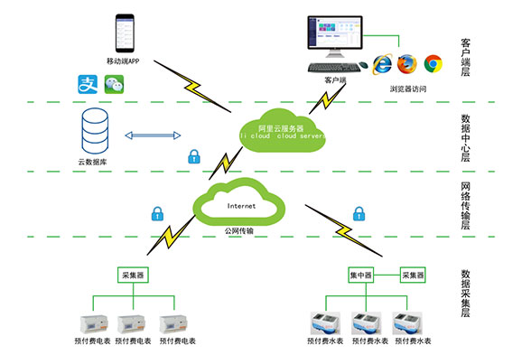 對(duì)于分布不同省、地市或同地市不同區(qū)域的連鎖商業(yè)、集團(tuán)、百貨、門(mén)店、物業(yè)、院校等業(yè)務(wù)分散,要求集中管理、線(xiàn)上支付,低額提醒、欠費(fèi)告警。但常規(guī)的本地插卡付費(fèi)、本地預(yù)付費(fèi)并不能完全滿(mǎn)足客戶(hù)管理需求,預(yù)付費(fèi)云平臺(tái)應(yīng)運(yùn)而生。AcrelCloud-3200水電預(yù)付費(fèi)云平臺(tái)無(wú)縫集成商業(yè)、物業(yè)公司、集團(tuán)企業(yè)、院校等分散布置的安科瑞DDSY/ADF系列電子式預(yù)付費(fèi)電能表、閥控智能水表等,提供微信、支付寶、銀聯(lián)等可選的在線(xiàn)支付方式,大大方便了用戶(hù)充值、圈存,提供預(yù)警和充值、退費(fèi)、電能消耗等記錄查詢(xún),方便用戶(hù)和管理方的數(shù)據(jù)統(tǒng)計(jì)和財(cái)務(wù)分析,提供先交費(fèi)后使用的管控機(jī)制,大大降低了管理部門(mén)的收費(fèi)成本。
